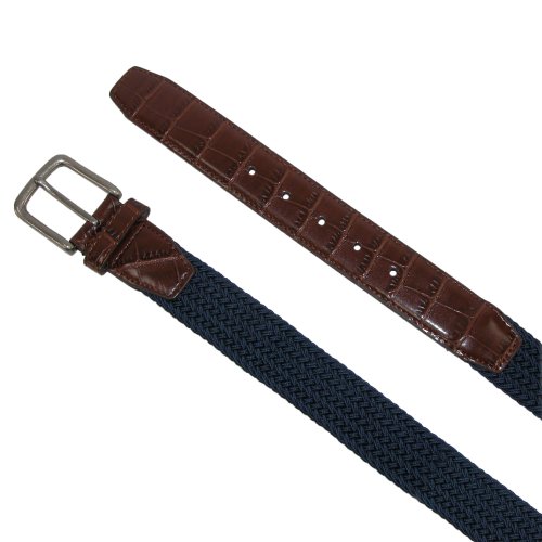 - Feature : Stretch Braid Golf Belt with Croc Print Tabs by CTM® / Elastic and faux leather / Long end tab with croco print / 1.25 inches wide / Antiqued nickel buckle