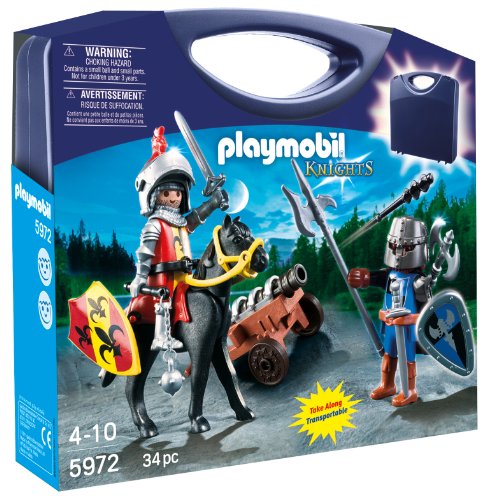 -. Feature : Have fun on the go with the Carrying Case Knights / Playmobil is the largest toy manufacturer in Germany / Figures can bend, sit, stand and turn their heads / Encourages children to explore and learn while having fun / Includes 2 knights with armor, horse, functional cannon, other accessories and convenient carrying case