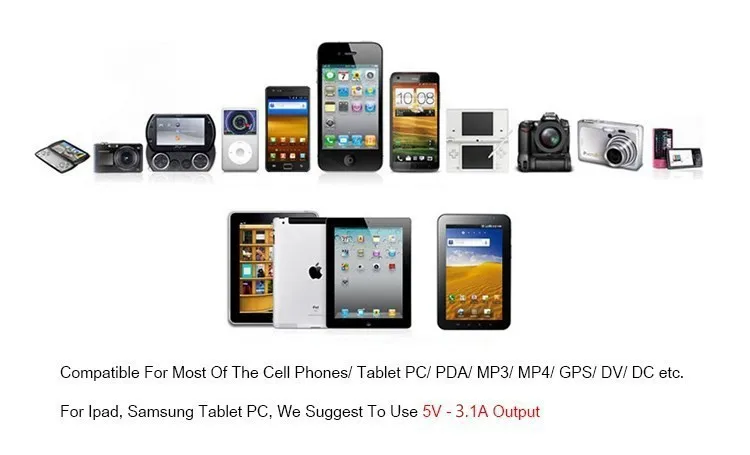 USB 1 Output:5V-1A, For iPhone/iPod, All The Smart Phones,mp3/mp4