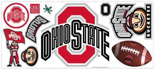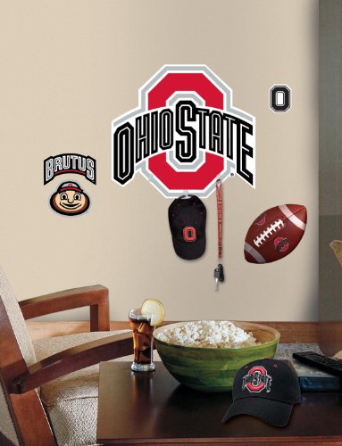-. Binding : Tools & Home Improvement -. Brand : RoomMates -. Color : Red -. EAN : 0034878840147 -. Feature : Decals range in size from 2.5-Inch wide x 3.25-Inch high to 18-Inch wide x 17-Inch high / Easy to apply - just peel and stick / Applies to any smooth surface / Decals are removable and repositionable with no sticky residue / Wall Decals made in the USA -. IsAutographed : 0 -. Label : York Wallcoverings -. Manufacturer : York Wallcoverings -. Model : RMK1836GM -. MPN : RMK1836GM -. NumberOfItems : 1 -. PackageQuantity : 1 -. PartNumber : RMK1836GM -. ProductGroup : Home Improvement -. ProductTypeName : BUILDING_MATERIAL -. Publisher : York Wallcoverings -. Studio : York Wallcoverings -. Title : RoomMates RMK1836GM Ohio State Peel and Stick Giant Wall Decal with 3 Hooks -. UPC : 034878840147 Do you find yourself losing your keys often, or are you in need of a stylish way to keep them ready by your door? We have just the thing for you. This clever solution combines your favorite collegiate team logo with peel & stick hooks, and the result is a cool key-holding piece of wall decor that's sure to be a big hit with sports fans. Your Ohio State wall decal is removable and repositionable after application, and can be transfered to a new wall or surface at any time. A great gift idea for college students or sports enthusiasts. Comes with 3 hooks