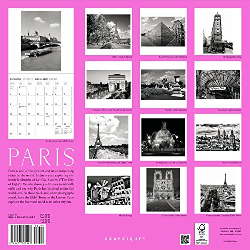 -. Binding : Calendar -. Brand : Graphique -. EAN : 9781477025147 -. Edition : 16m Wal -. Feature : Size: 12" x 12" format / Embellished with pink foil / Plan ahead with a 4-month preview page for 2018 / Each page includes before & after preview months / 4 languages: English, French, Spanish & Italian -. ISBN : 1477025146 -. Label : Graphique de France -. Manufacturer : Graphique de France -. Model : CY23717 -. MPN : CY23717 -. NumberOfItems : 1 -. PackageQuantity : 1 -. PartNumber : CY23717 -. ProductGroup : Office Product -. ProductTypeName : OFFICE_PRODUCTS -. PublicationDate : 2016-07-15 -. Publisher : Graphique de France -. Studio : Graphique de France -. Title : Graphique 2017 Paris 12" x 12" Wall Calendar (CY23717)