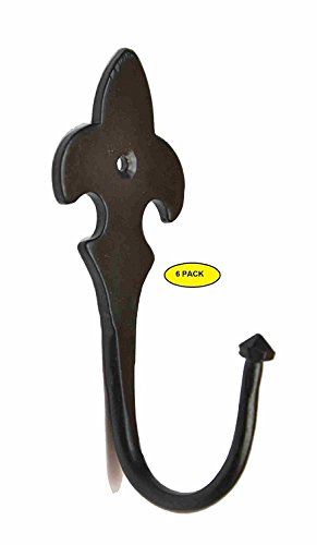 A29 Hand Forged Iron Single Coat Hook, Black Powder Coat Finish, 6-Pack