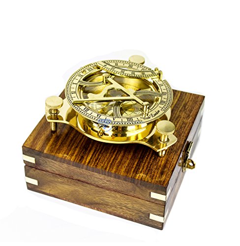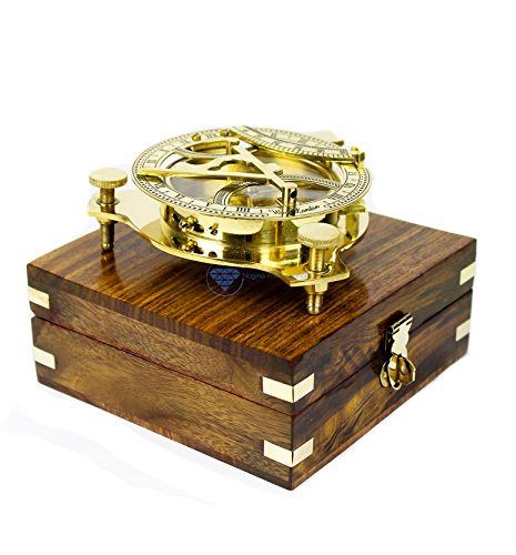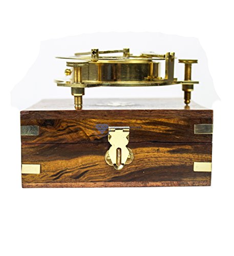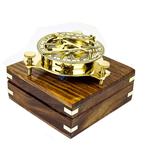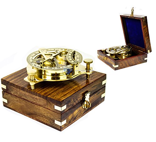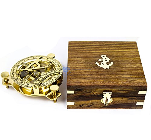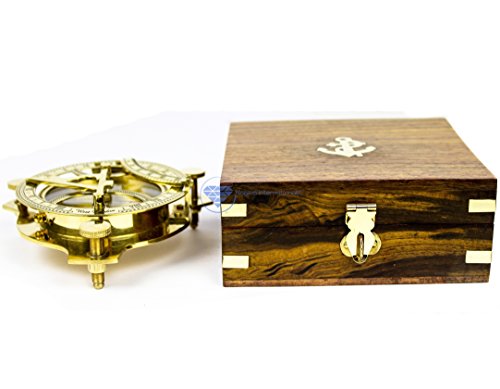 Nautical Brass Triiangular Sundial Compass and Level Meter With Premium Hand Crafted Rosewood Decorative Protective Case | Anchor Inlaid Wooden Chest | Maritime Decorative Gifts | Nagina International