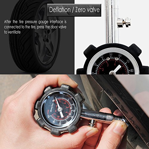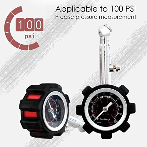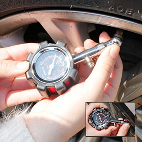 - HIGH QUALITY - Feels solid in the hand & built from premium heavy-duty components shielded by a rugged gear-style protective guard; features a flexible no-leak air hose making checking tire pressure easier than ever.