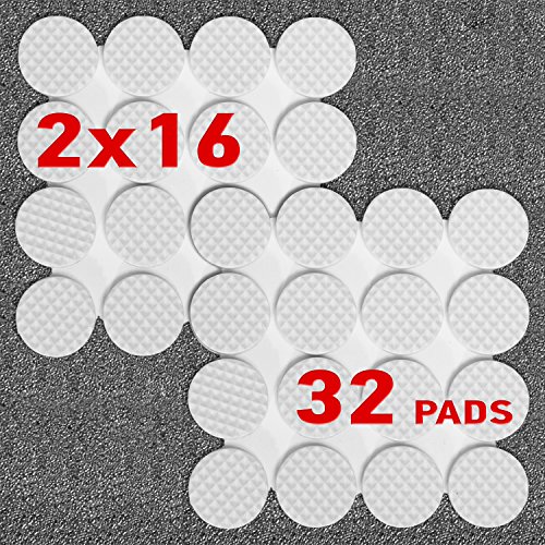-. Feature : Protects wooden, laminate, glass or tiled flooring (surfaces) from furniture scratches and scuffs / Self-adhesive - easy to peel from backing, easy to apply, stick well and stay stuck / Heavy duty adhesion for static and everyday moving furniture / Small enough to be invisible yet strong enough to stay in place / Material: Foam rubber; Color: White; Round Felt Pads 20X20 mm; Set of 32 pcs