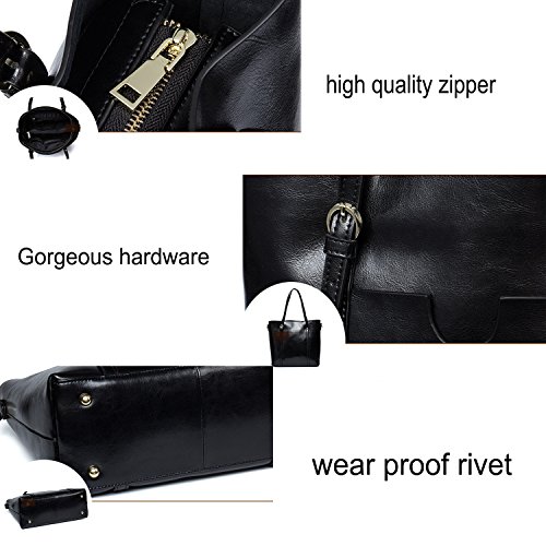Material: Material: High quality greased leather, it is faux leather, not genuine leather; Closure: Top Zipper Closure