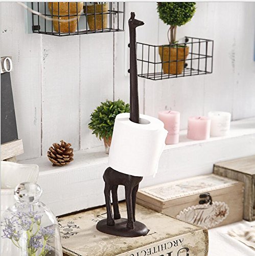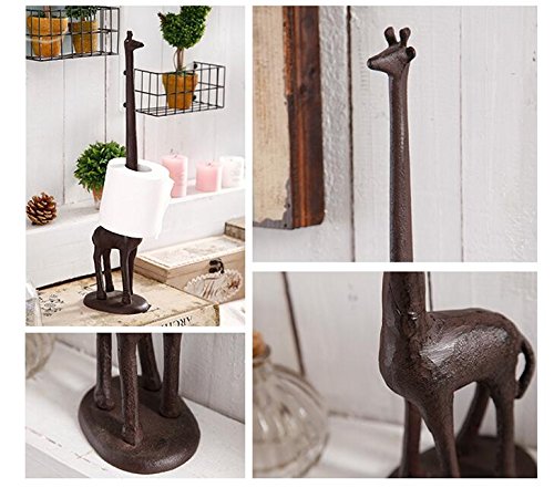 KiaoTime I Vintage Rustic Cast Iron Giraffe Paper Towel Holder Metal Stand Bath Kitchen Roll Paper Holder (Giraffe)
