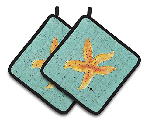 Caroline's Treasures Starfish On Teal Pair of Pot Holders 8527PTHD, 7.5HX7.5W, Multicolor