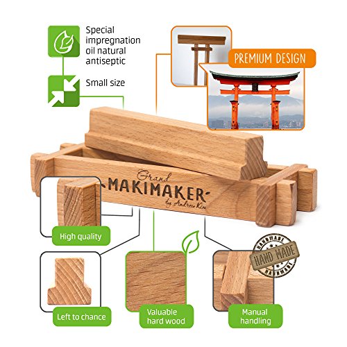- TRADITIONAL DESIGN: This neat sushi making set will be a real treasure of your kitchen. Authentic design and unique shape of our sushi press, make it an element of traditional Japanese cuisine. It will be a good interior element of your kitchen with a beautiful texture and wooden details of our Makimaker Grand™.