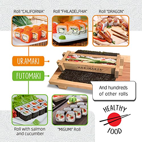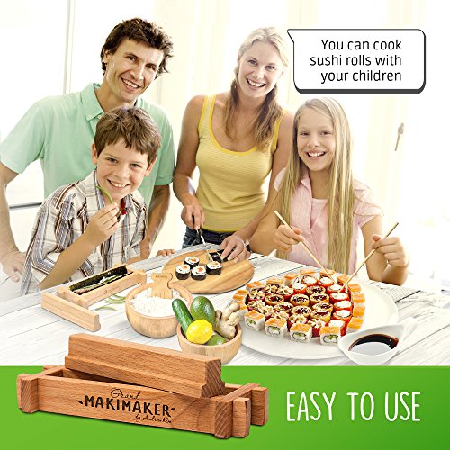 - EASY TO USE: To prepare Japanese sushi you don’t need to be a chef or reread dozens of cookbooks. With our Makimaker Grand™ even a beginner will be able to make delicious rolls. You can also cook sushi rolls with your children; it will be a fun experience which will teach your kids something new, and will develop the fine motor skills of their hands. Using our sushi making kit you can cook an original snack for a party in just a couple of minutes.