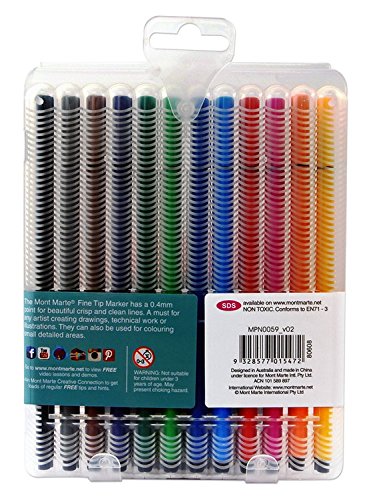 12 x 0.4mm fine tip marker and 0.4mm point for beautiful crisp and clean lines and can be used for colouring small detailed areas. One package contains 3packs, each pack has 12 markers.