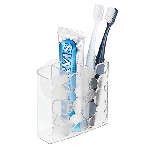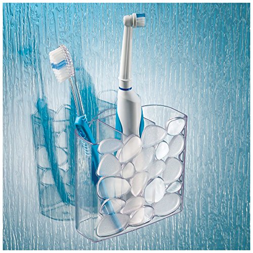 mDesign Bathroom Shower Strong Suction Storage Center for Toothbrush, Electric Toothbrush, Razors, Toothpaste Tubes, Makeup Brushes - Repositionable - Pebble Design, Clear