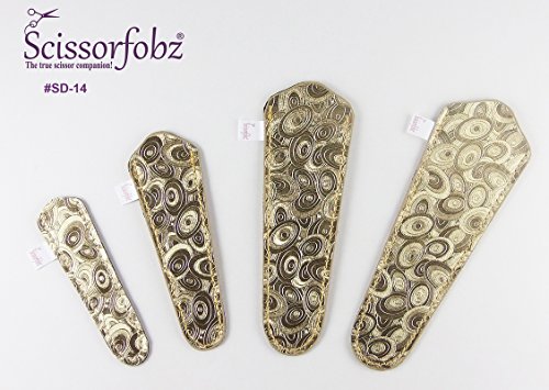 Scissors by SCISSORFOBZ with ScissorGripper -VALUE PACK-4 sizes- Designer Scissor sheaths Covers Holders for embroidery sewing quilting - Quilters sewers gift - Modern Shiny Metallic Gold . #14