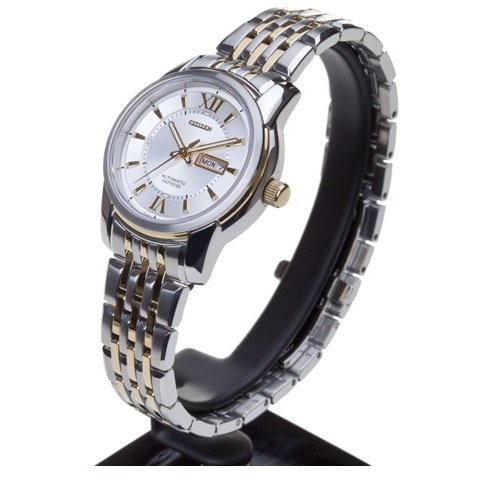 ブランド:CITIZEN(シチズン) 型番:PD3424-52A ケースの形状:ラウンドフェイス 風防素材:サファイアガラス 表示タイプ:アナログ表示 ケース素材:ステンレス ケース直径・幅:31 mm ケース厚:11 mm バンド素材・タイプ:ステンレス バンドカラー:マルチカラー 文字盤カラー:シルバー系 カレンダー機能:日付、曜日表示 ムーブメント:自動巻き メーカー保証:国際保証1年間:International warranty for one year メーカー型番: PD3424-52A