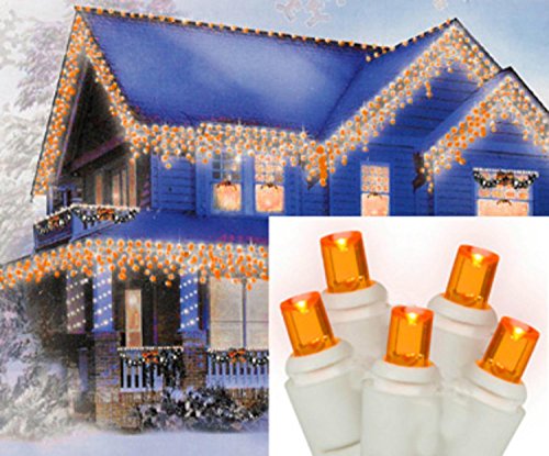 Sienna Amber-Orange LED Wide Angle Icicle Christmas Lights with White Wire, Set of 70