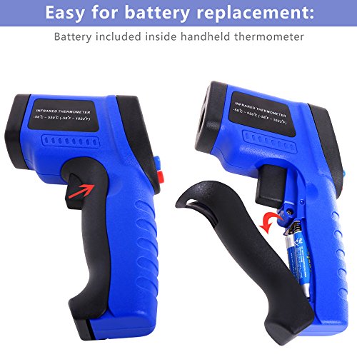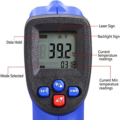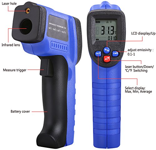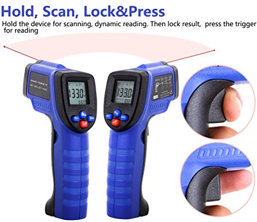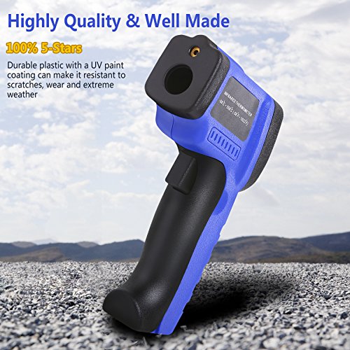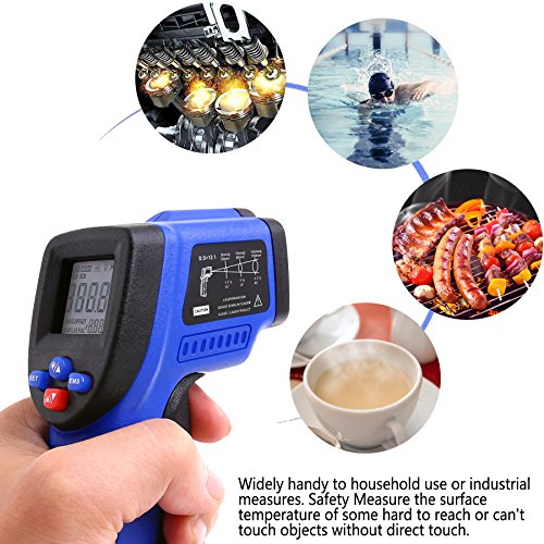 - VERSATILE DESIGN: Indulge in INFRARED TECHNOLOGY that makes this thermometer handy to household use or industrial measurements! Perfect for cooking, barbecuing, automobile maintenance, HVAC working, fire-watch, electrical engineering and a host of other tasks. Measure -58℉~ 1022℉ (-50℃ ~ 550℃) NON-CONTACT, in LESS THAN 500MS!