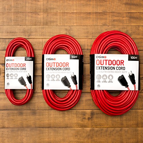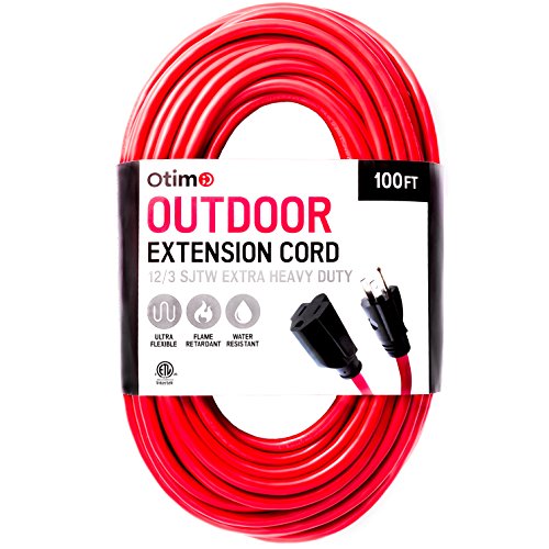 Otimo 100 ft 12/3 Outdoor Extra Heavy Duty Extension Cord - 3 Prong Extension Cord, Red