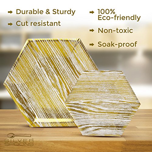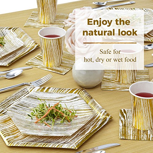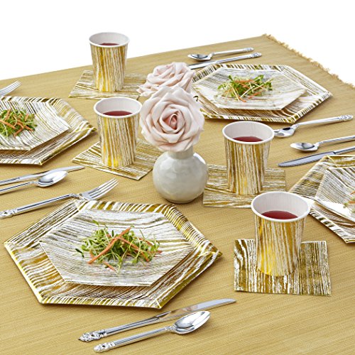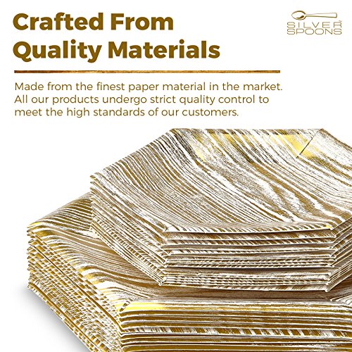 Benefits: Made from the finest paper on the market. All our products undergo strict quality control to meet the high standards of our customers. Our eco-friendly non-toxic disposable paper plates are safe to use anytime and anywhere. Classy elegant, yet affordable. These plates will enhance the appearance of your food displays and will create the perfect setting for your event. This is a hassle-free alternative to using real China dishes and worrying about rental fees or broken pieces. Our disposable tableware collection will enhance your party and turn it into a magnificent and memorable experience.