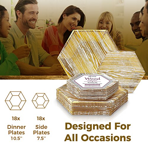 What’s in the Box: 18 x White Gold Wood Dinner Plates 18 x White Gold Wood Side Dinner Plates
