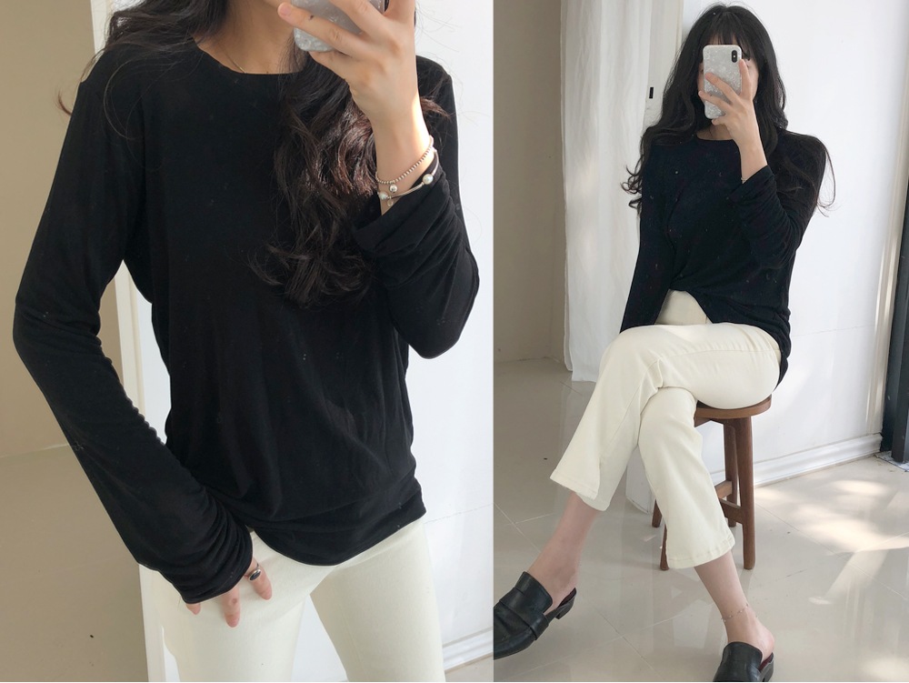 베이직 라운드 스판 티셔츠