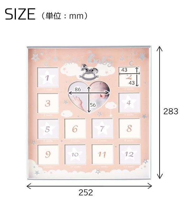 パステルカラーのキュートなデザインが目を引くフォトフレームです。生まれてから1歳の誕生日までの写真を毎月飾れます。 |