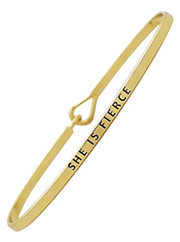 Bracelet is engraved with the phrase "SHE IS FIERCE"