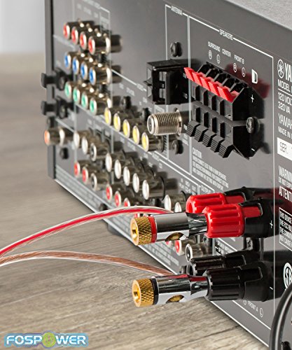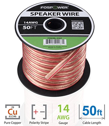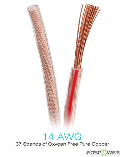 FosPower 14AWG Speaker Wire [14 Gauge | 50 FT] Premium Spooled Oxygen-Free Copper OFC Speaker Wire with Clear PVC Jacket & Polarity Stripe