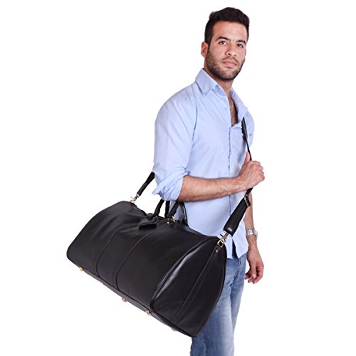 -. Title : Leathario Mens Genuine Leather Overnight Travel Duffel Weekender Bag Leather Lage
