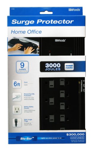 Woods Wire 0416518811 9-Outlet Surge Protector Power Strip with 6-Foot Cord, 3000 Joules of Protection