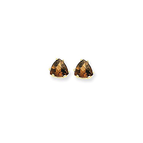 ICECARATS DESIGNER JEWELRY 14K YELLOW GOLD 6MM TRILLION CHECKER CUT SMOKY QUARTZ POST STUD BALL BUTTON STUD EARRINGS