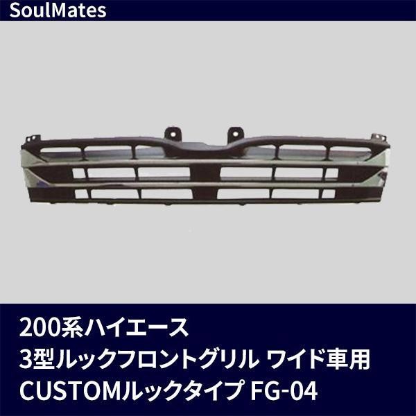 | 200系ハイエース1型・2型ワイド車→3型顔面チェンジ車及び3型ワイド車に、「カスタム用ヘッドライト 3型SUPER GLルック」を取り付けた際に使用するフロントグリルです。元々の純正1型・2型グリルはサイズが異なり、使用不可となります。面倒な車両加工は一切不要!!インナーカバー付★ |