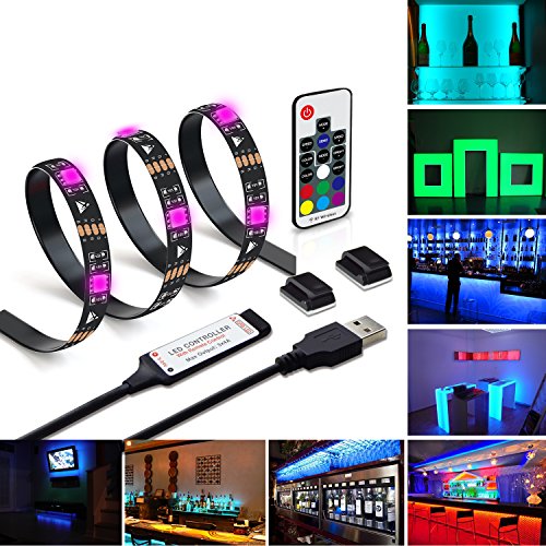 TV backlight Lighting 55inch-65inch TV to 70inch,WENICE USB LED strip lights Kit 3m/9.9ft with 17key RF Remote - 20 Color 5050 Leds Bias Lighting for HDTV(118in)