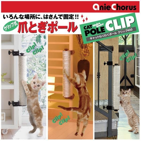 | いろんな場所にはさんで固定するだけ!クリップ式爪とぎポール★ |