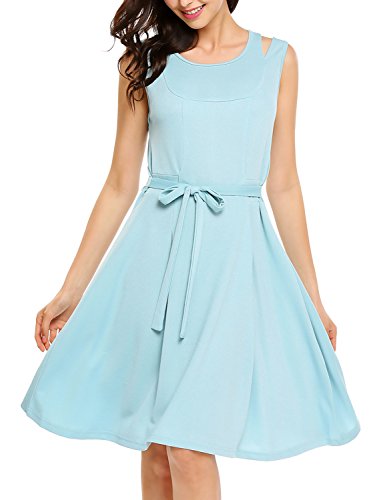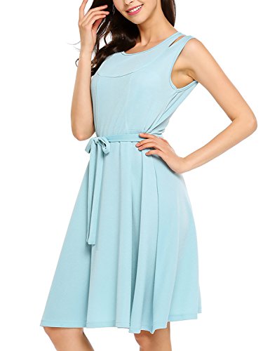 Decoration: Belt Package Content: 1 x Women Dress SIZE CHART: Tag S-----Shoulder 13.7"---Bust 32.3"---Waist 27.2"---Center Back Length 35.0"