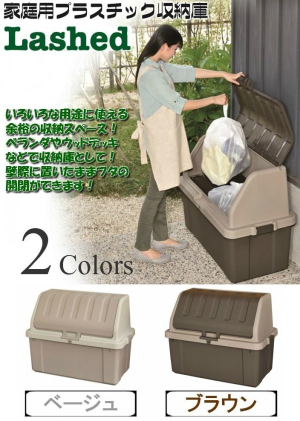 ベランダやウッドデッキなどで収納庫として!!壁際に置いたままフタの開閉ができます♪ 製造国:日本 素材・材質:PP(ポリプロピレン) 商品サイズ:W920×D500×H710mm 重量:約5300g 仕様:容量:約200L(※フタ含む全体)一部組立 ※サプライヤー直送品  ご注文後3~4営業日後の出荷となります【商品名】Lashed ラシェッド 家庭用プラスチック収納庫 ダークブラウン・LS-DBR