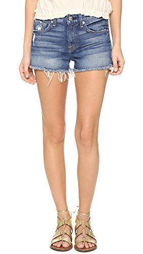 Heavy whiskering and shredded holes accentuate the casual feel of these 7 For All Mankind cutoff shorts. 5-pocket styling. Button closure and zip fly.
