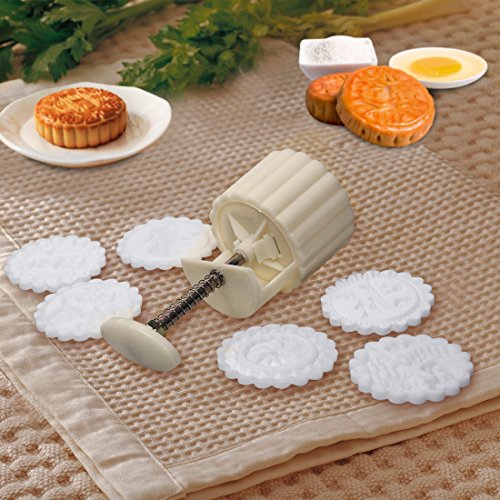 Cookie Stamps Moon Cake Mold with 6 Stamps, 100g Cookie Press Mid Autumn Festival DIY Decoration Press Cake Cutter Mold