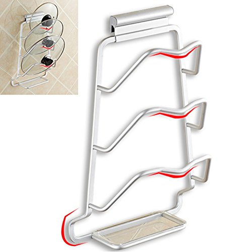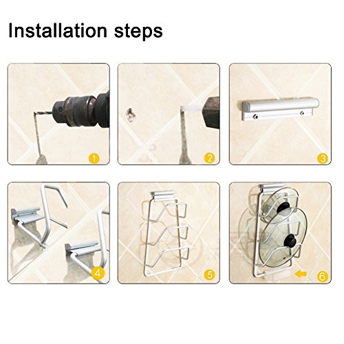 Studio : HomeLives Publisher : HomeLives Product Description Wall Mounted Pot Lid Organizer Wall or Cabinet Door mounted to save space, utility kitchen gadgets to keep your kitchen clean and tidy; Strong Bearing Load bearing up to 5kg, heavy duty to hold pot and pan lid; Screw connection, stronger and more durable; Groove Design Keep your kitchen lids in place and will not fall off, with water tray, available to hold the water to avoid falling to the ground; Easy to Install Hardware screws are included to provide secured installation, removable mounting base, easy to take down for cleaning; Compatibility The storage organizer rack is able to hold 3 pan or pot lids with different type of handle; Specifications: Material: Aluminum Dimensions: 24.5*39.5*11cm/9.6*15.5*4.3in 0
