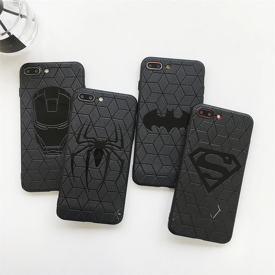 Features:Superman Batman Iron Man Spiderman Black Phone Case Cover