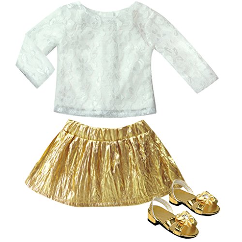 - 4 Piece Gold & White Outfit fits American Girl Dolls, Madame Alexander, Sophia's Dolls & More!