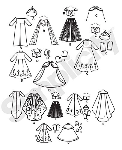 -. Brand : Disney Frozen -. Color : blue -. EAN : 0039363342045 -. Feature : Includes Anna and Elsa's coronation gowns, Anna's day dress cape and hat, and Elsa's Snow Queen gown. Crown Included. / Made in the USA / One Size (For 18" Dolls) -. Label : Simplicity -. Manufacturer : Simplicity -. Model : M0747 -. PackageQuantity : 1 -. ProductGroup : Home -. ProductTypeName : ART_AND_CRAFT_SUPPLY -. Publisher : Simplicity -. Studio : Simplicity -. Title : Simplicity Disney Frozen Home Sewing Pattern for 18" Doll Clothes M0747 -. UPC : 039363342045
