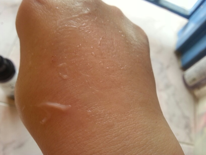 Take a closer look, after spreading over my skin for < 1 min, the essence turns into water droplets. In my daily skincare regime, usually I will pat around my skin for better absorbency.