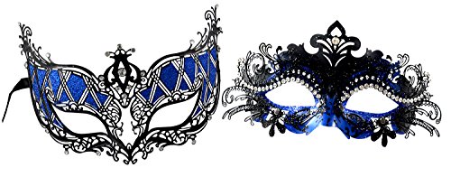 -. Brand : 1BAY -. Department : womens -. EAN : 1274225783348 -. Feature : Beautiful Mysterious, intrigue, Unique Venetian Couple Vintage Design Masquerade Mask. / Lightweight and ties with ribbons. / High Quality mask crated with Laser cutting technology design work. / Looks amazing on and should suit most face shapes. The eye holes are wide and the mask can gently be bent to adjust to your face shape. / Perfect for all masquerade events: masquerade ball, Venetian carnivals, weddings, proms, raves, custom costumes, etc. -. PackageQuantity : 2 -. ProductGroup : Apparel -. ProductTypeName : ADULT_COSTUME -. Size : One Size -. Title : 1Bay Couple Black and Blue Masquerade Mask with Clear Rhinestones
