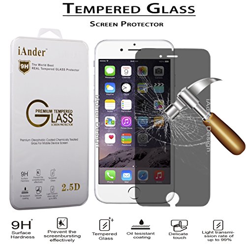 iAnder iPhone 6 Privacy Premium Tempered Glass Screen Protector - 0.3mm thickness / 2.5D Rounded Edge / Industry 9H Hardness with Oleophobic Coating - HQ Clarity and Maximum Touchscreen Accuracy