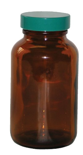 Vestil BTL-UVW-G-8-CS Wide-Mouth Round UV Glass Bottle with Green Cap, 8 oz Capacity, Amber (Pack of 6)