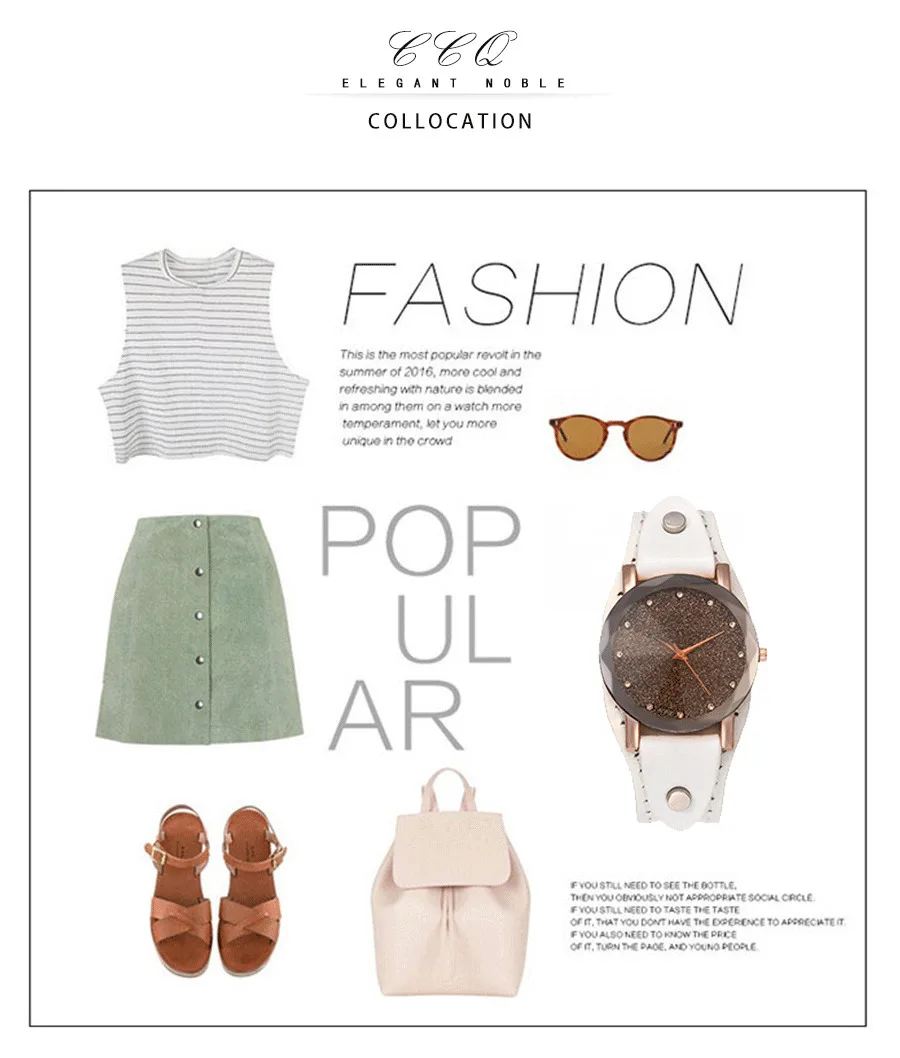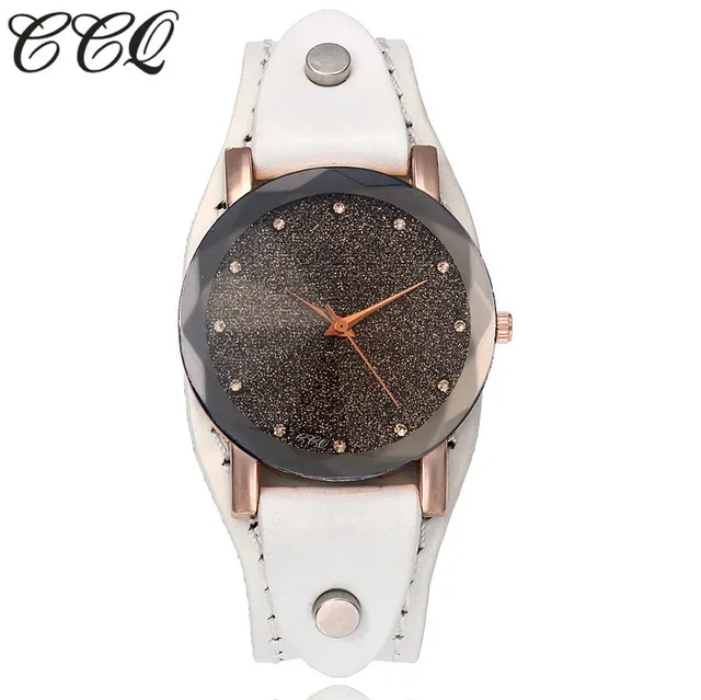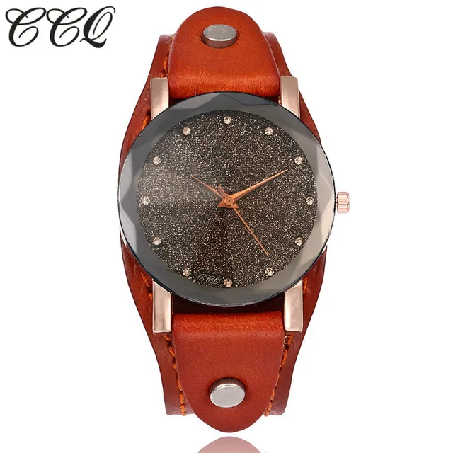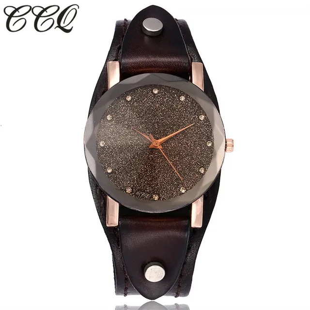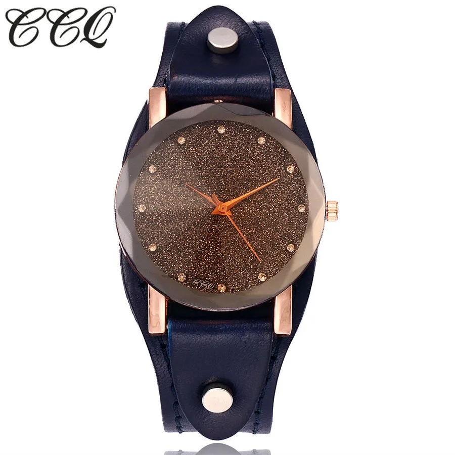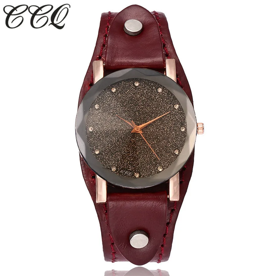 | [해외] 2017 CCQ 새로운 패션 빈티지 소 가죽 팔찌 시계 캐주얼 간단한 스타일 여성 석영 손목 시계 Relogio Feminino |