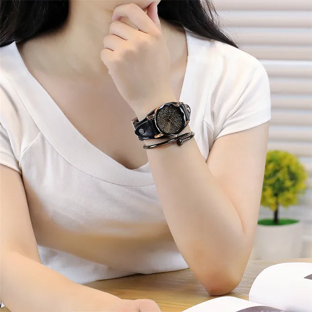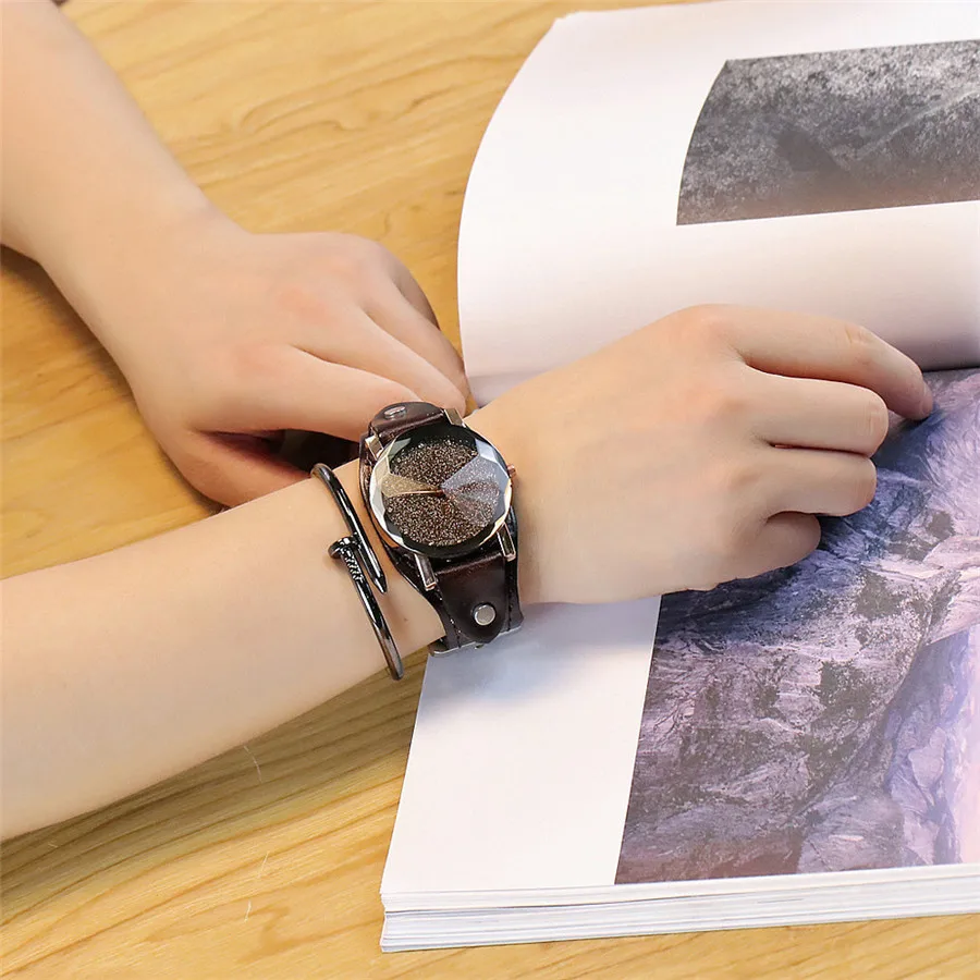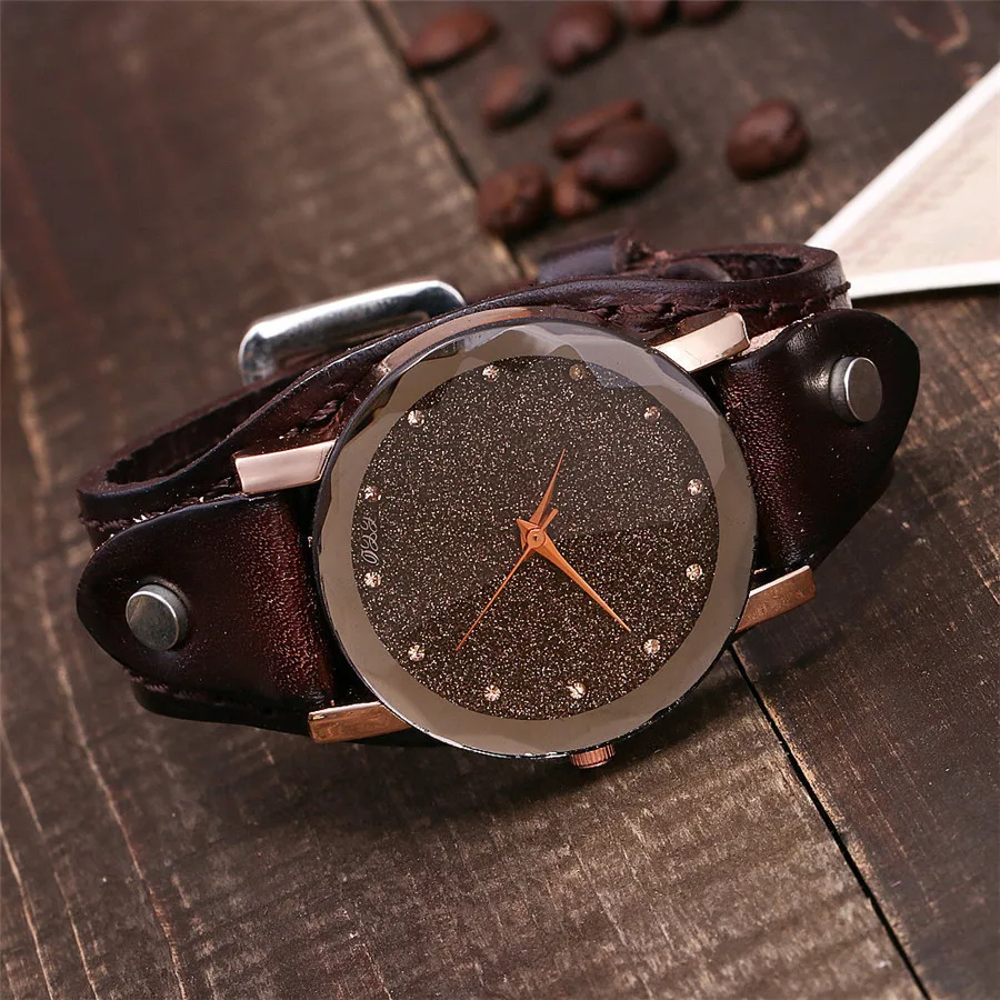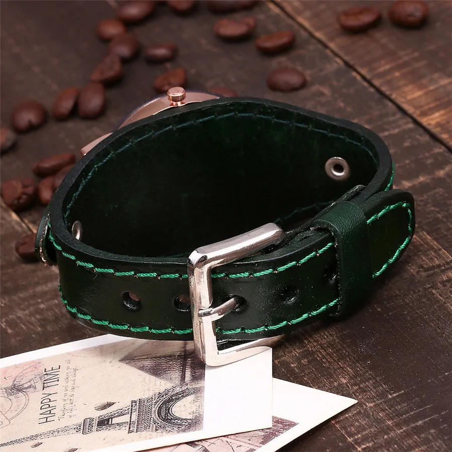| [해외] 2017 CCQ 새로운 패션 빈티지 소 가죽 팔찌 시계 캐주얼 간단한 스타일 여성 석영 손목 시계 Relogio Feminino |