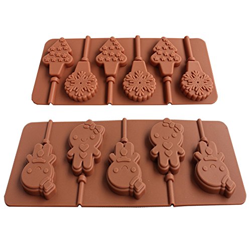 Wocuz Silicone Chocolate Lollipop Mold Candy Mold Ice Cube Tray, Snowflake Christmas Tree Snowman, Set of 2
