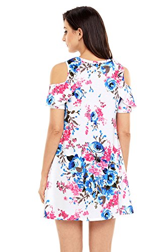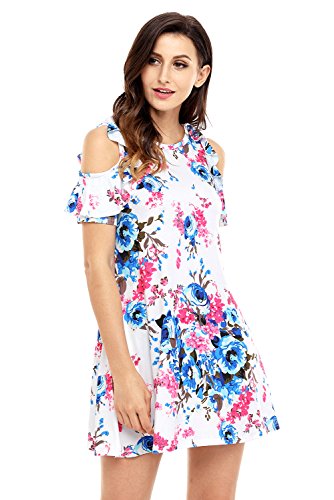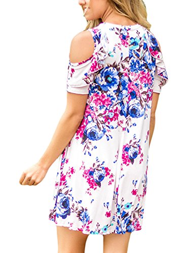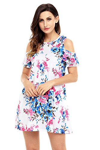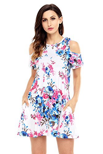 Annflat Women's Summer Floral Print Cold Shoulder Casual Swing Tunic Dress With PocketsOur Floral dress is so adorable in this summer!Perfect for summer beach,casual,party,work,home wear