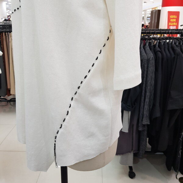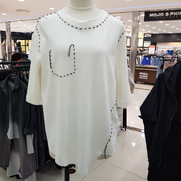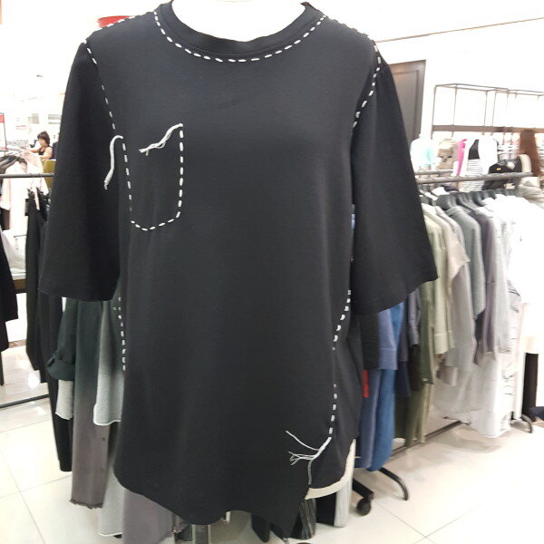 스티치가 포인트로 디자인된 루즈핏 티셔츠입니다.아랫단이 컷팅된 스타일의 티셔츠랍니다